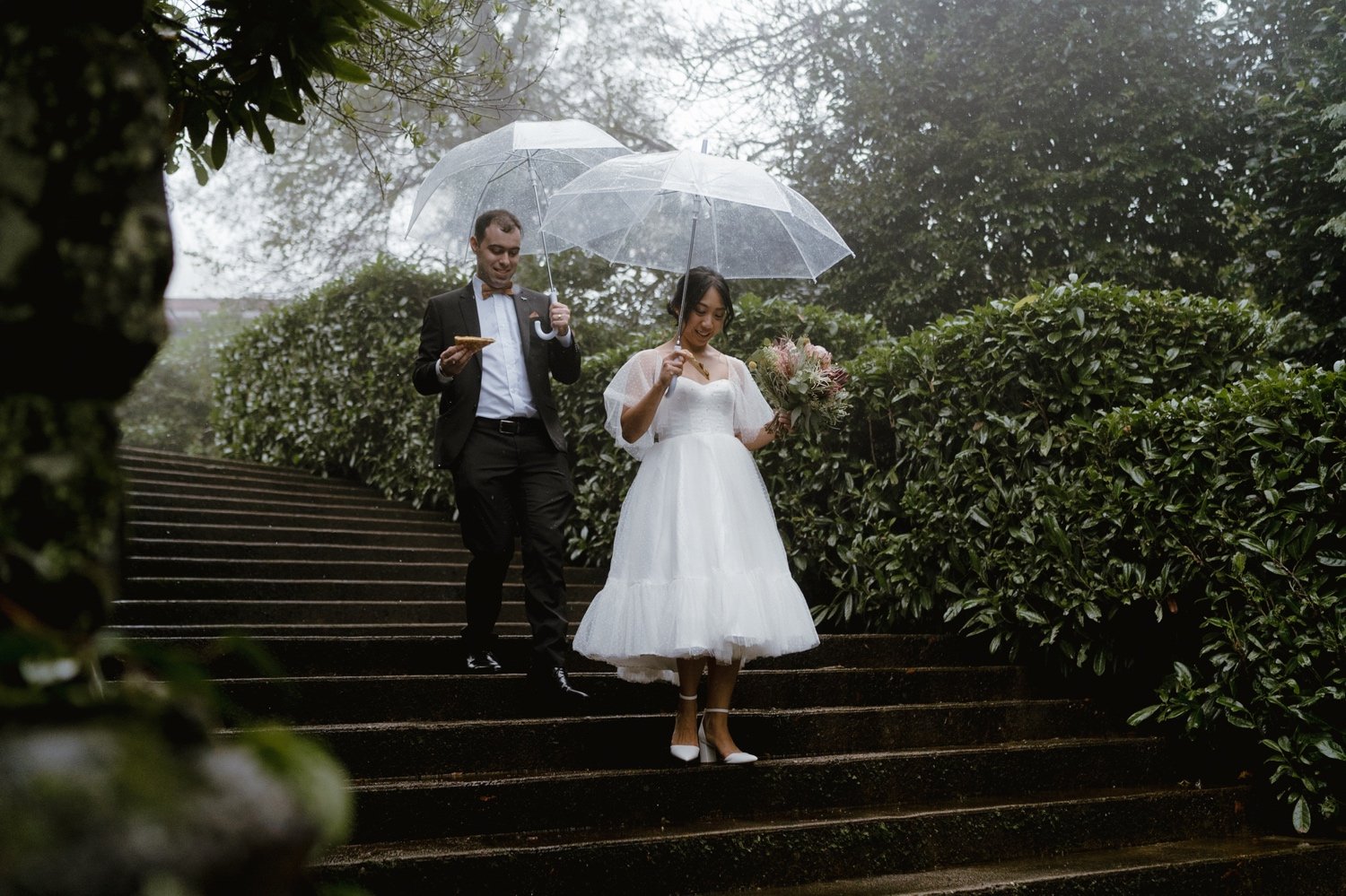 The day was filled with so much laughter, rain downpours, epic views from the Botanic Gardens, rolling clouds, wedding party fun, quizzes and of-course, good food! Cherryl and Anthony went all out on customising their day to be THEIRS. They had a morning wedding, pre-ceremony letter reading and prayers, split photo time to enjoy more time with guests, hilarious speeches, quizzes and seriously cool food. These guys share a LOVE for food, so of-course they had some funky ideas. Anthony is Italian and Cherryl is Indonesian, so they decided rather than a catered event, they choose all their fave foods to share with guests.